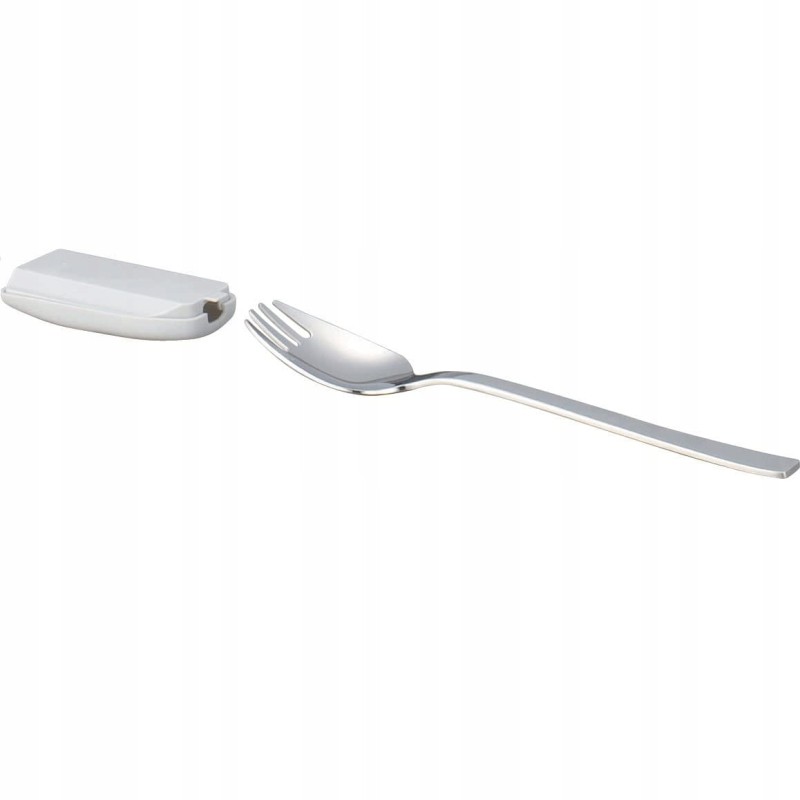 Łyżko-widelec (spork) to znakomite rozwiązanie dla turystów, którzy chcą zabrać jak najmniej ekwipunku na wyprawę. Łyżko-widelec jest bardzo funkcjonalny, nie zajmuje dużo miejsca oraz można zjeść nim zarówno zupę, jak i danie obiadowe. Materiał z którego został wykonany to wysokiej jakości stal nierdzewna 18/8 odporna na korozję. Etui dołączone do zestawu utrzymuje higienę i chroni plecak przed zabrudzeniami po jedzeniu.